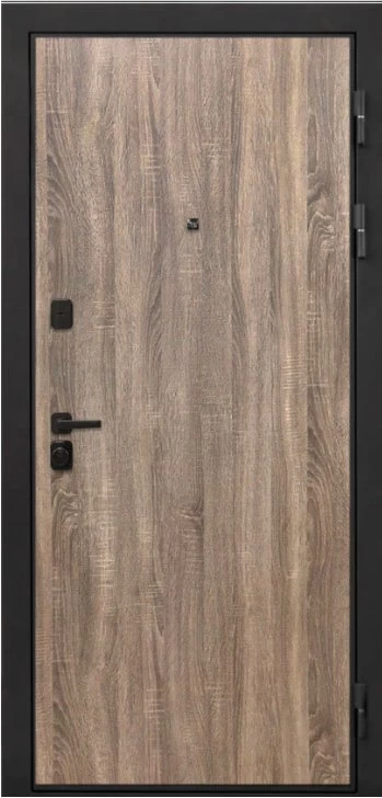 Дизайнерская входная Дверь Интекрон Профит Black (фурнитура черная) Дуб турин класса Люкс с несколькими листами стали, звукоизоляцией и теплоизоляцией. Утепленный короб и полотно защитят от сквозняков и шумов. Модель не только надежная, комфортная, защищенная и высочайшего качества, но и очень красивая! Будет отлично сочетаться с интерьером дома, квартиры или офиса. Сейчас действует выгодное предложение по цене: 76 399 руб.